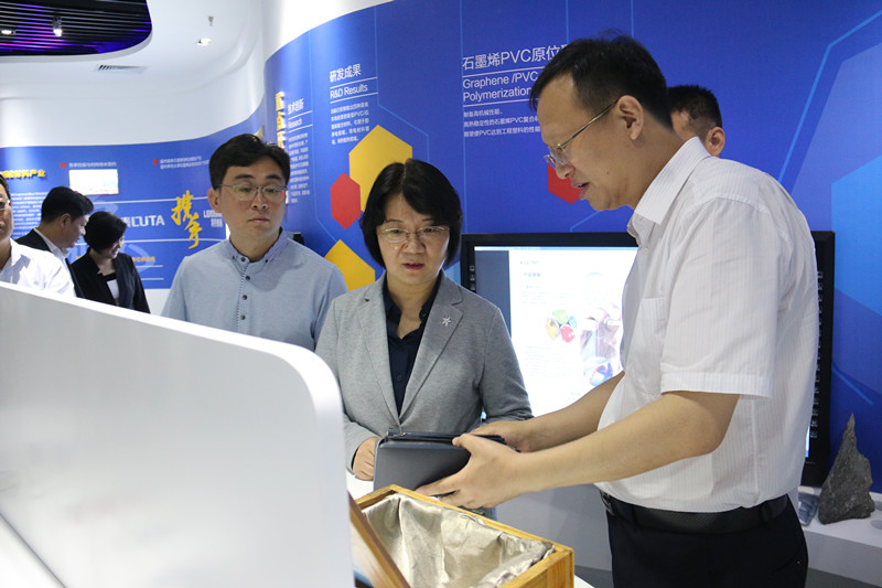 在集团展厅,范晓丽书记饶有兴趣地询问了集团石墨烯产品的性能和用途,对集团自主研发石墨烯产品的广泛用途和广阔前景表示赞叹。在物流电商平台,范晓丽书记对集团公司通过电商平台进行物资集采,减少中间环节,规避腐败行为,降低成本的做法给予肯定。